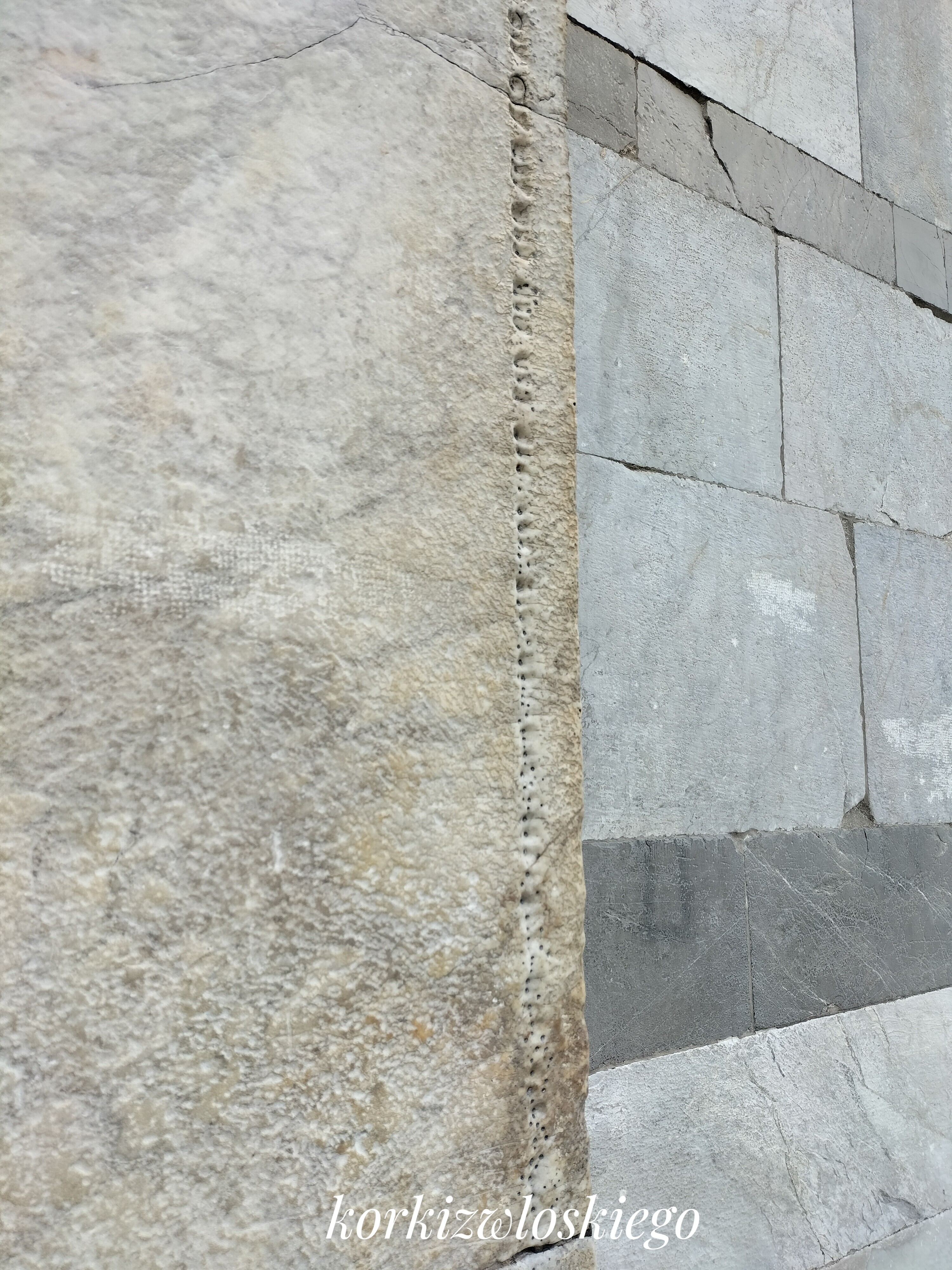 Z Katedrą związana jest jeszcze jedna legenda, która głosi, że gdy wszystkie elementy Placu były już gotowe, to zazdrosny o ich piękno diabeł postanowił je zniszczyć. Dobry Anioł uratował Plac przed katastrofą a jedyne, co mógł zrobić demon to wspiąć się na jedną ze ścian Duomo, zostawiając w niej ślady swoich pazurów. To są te dziurki, które widzisz na zdjęciach poniżej. Ale to nie koniec! Nikt dokładnie nie wie ile tych śladów jest, ponieważ za każdym razem gdy ktoś próbuje je policzyć, wychodzi inny wynik :)